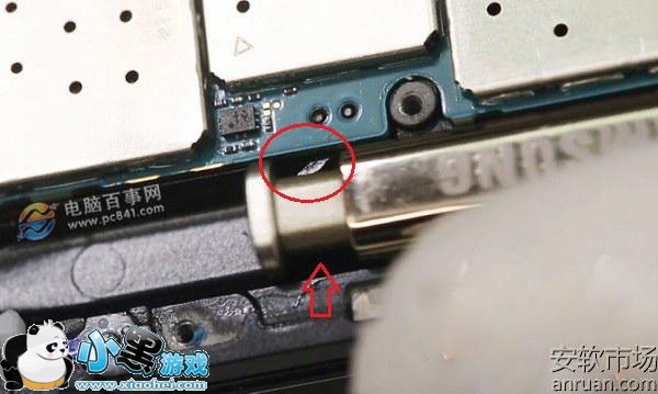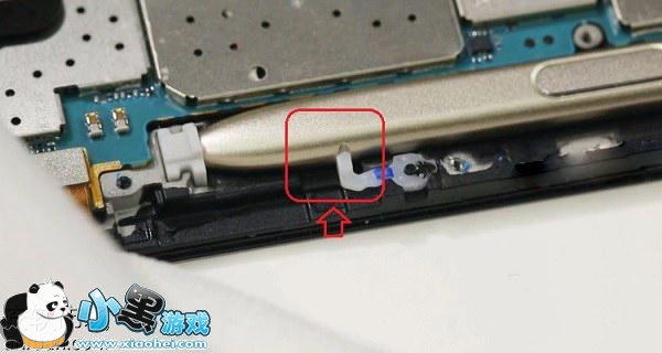 2、另外一个重点就是笔槽中间位置还有一个黑色的感应弹片,它是决定S pen是否能正常取出的关键。一旦插反了以后,再想通过正常的办法取出是相当困难的。