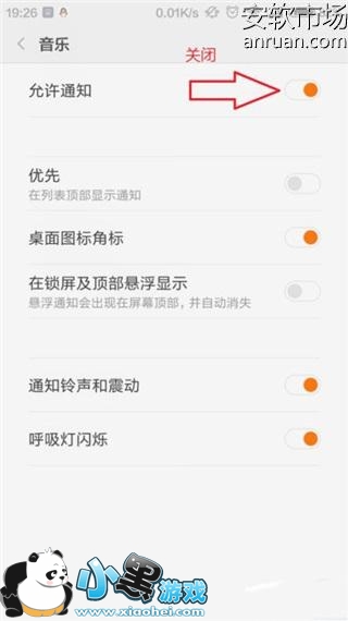 5、在设置菜单中把“允许通知” 后面的开关按钮关掉即可。这样就不用忍受烦人的推送消息了。