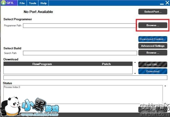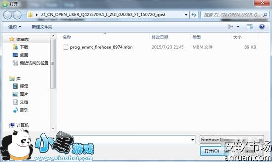 4.打开刷机工具中的QFIL程序,点击Programmer Path后的Browse,软件自动识别刷机文件“prog_emmc_firehose_8974.mbn”,双击文件选择。