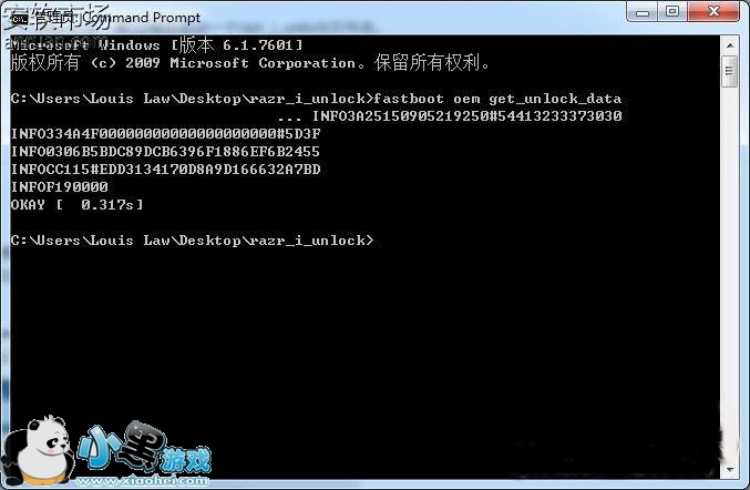 获得密钥后,返回cmd窗口,输入一下代码(注意:空格,以及注意解锁密钥):fastboot oem unlock 你的解锁密钥。
