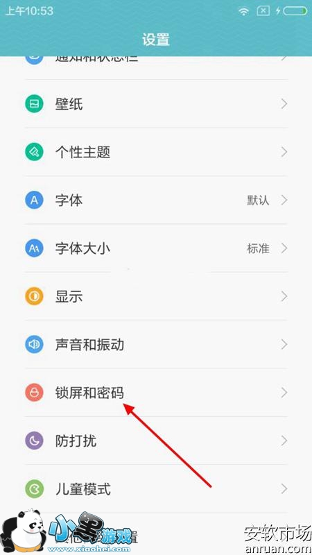 2、然后在设置界面找到【锁屏和密码】,点击进入,如下图所示: