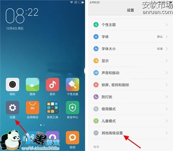 一、首先在红米Note3桌面找到并点击进入【设置】,依次再进入【其他高级设置】设置选项,如下示意图所示。