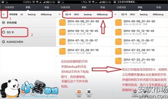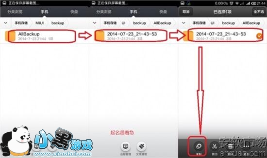 第五步。从SD卡复制回手机存储此处不贴图。与2、3步相仿。进入备份应用方可看见恢复。