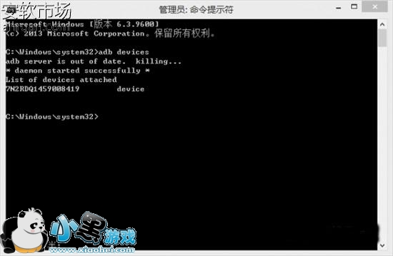 (2)下载ADB工具包,解压双击CMD运行,输入adb devices,回车。提示device,则说明已经正常连接,这样就可以进行解锁了(像提示什么存储空间不足之类的或者CMD文件无法运行,则进入电脑系统目录C:/Windows/System32,直接搜索CMD,复制一个到ADB文件夹覆盖即可)