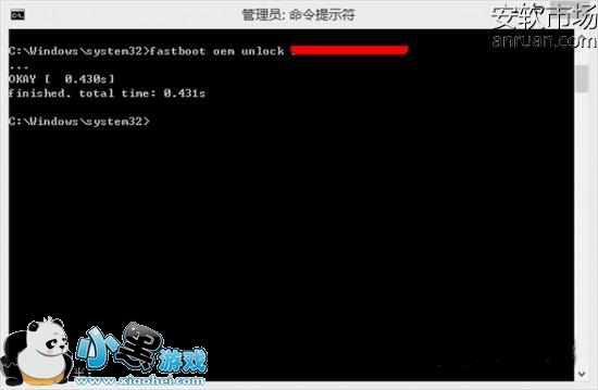 继续输入fastboot oem unlock 1234567890,(1234567890为解锁码),解锁码16位数,回车,手机将会自动重启,重新进入fastboot模式。