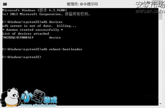 提示devices,然后输入adb reboot-bootloader,回车,手机自动重启进入到fastboot模式。