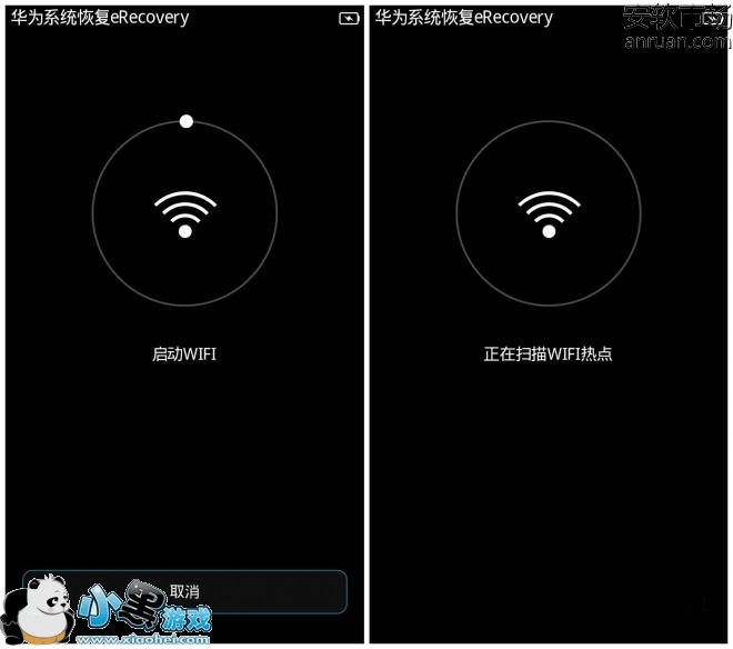 方法二:按键进入。先记得通过USB线连接到电源,在开机后立即长按音量上键(就是把声音调大的那个)3秒以上出现开机画面即可,稍候即可以看到“eRecovery系统主界面”。