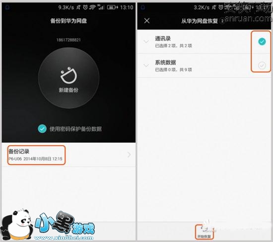 ④新手机下载华为备份→登陆华为账号→点击备份到网盘→点击备份记录→选择需要恢复的数据→开始恢复