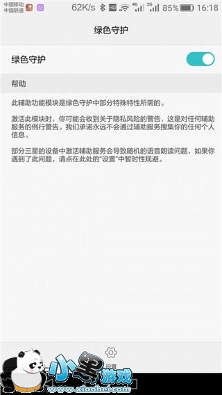三、打开设置-高级设置-辅助功能,将绿色守护设为开启,见下图。