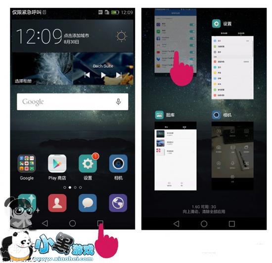 点击【最近键】,将不需要的应用屏幕顶部拖动,即可关闭改应用进程。