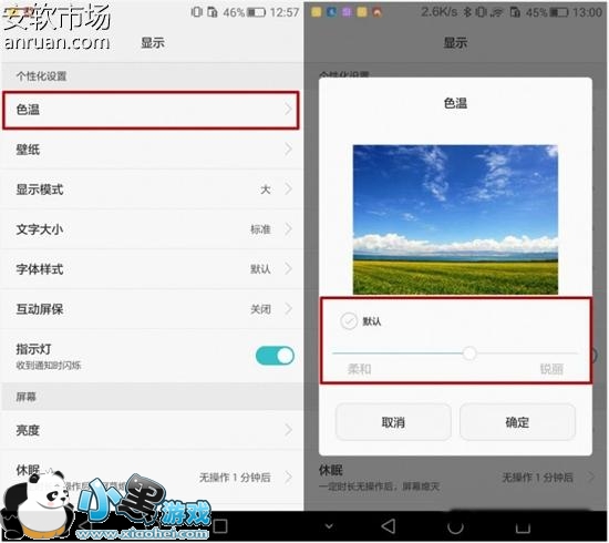 你要是不放心,你可以将同一张的风景图片或者人物照片导入Mate8和其他对比手机中,你会发现Mate8更加真实的还原了图片的原始色彩。如果还是不放心,没事还有办法:为了照顾到不同用户的喜好,华为手机提供了自主调节色温的功能,在“设置”—“显示”—“色温”中可以进行调节。