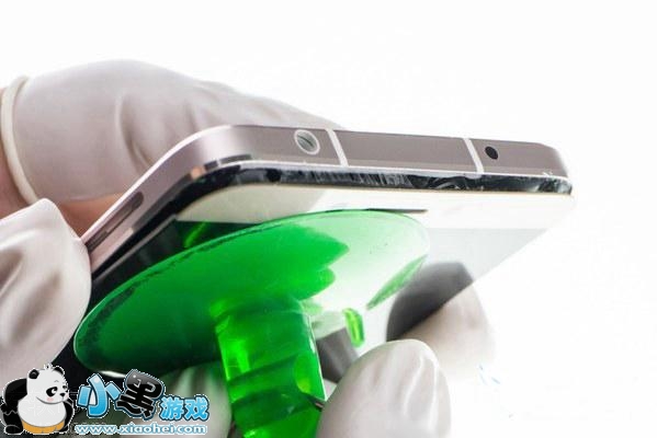 第二步:使用热风枪轻微加热乐视1屏幕四周,使屏幕玻璃固定胶软化后,使用吸盘将屏幕组件吸开,如图所示。