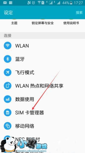 3、在“设定”中上翻找到并点击“SIM卡管理器”;