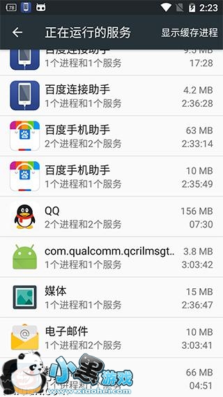 3、另外,如果我们开启开发者选项,就开发者选项中找到【正在运行的服务】就是老版的内存界面,可以看到后台主要是系统正在使用和QQ及时社交软件,其它几乎看不到: