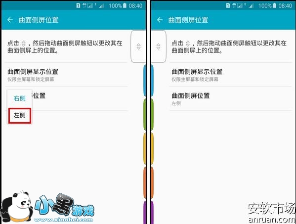3.用户可根据自己的喜好,来选择位置时靠左侧还是右侧了,这里为以“左侧”为例,曲面侧屏位置即更改为左侧。
