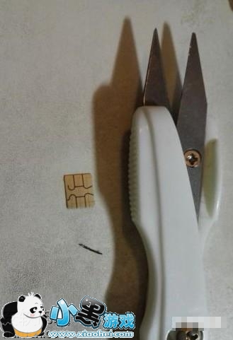 4.用做布艺手工的工具,剪刀也可以,剪掉sim卡芯片两边,避免sim卡两侧碰到金属卡托短路,sim卡很好剪的,像布一样。