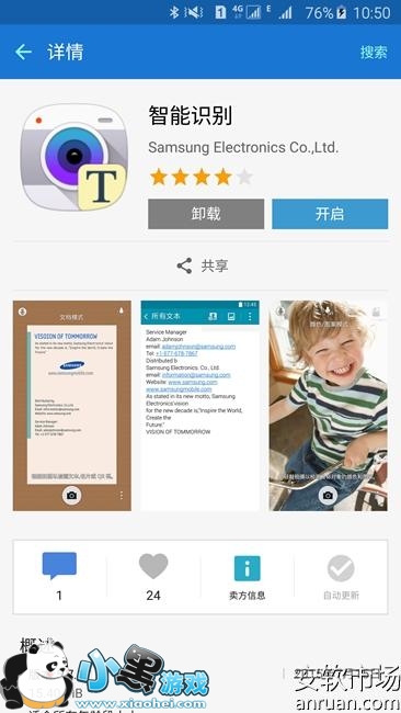 首先用户在三星应用商店中搜索并且下载“智能识别”;