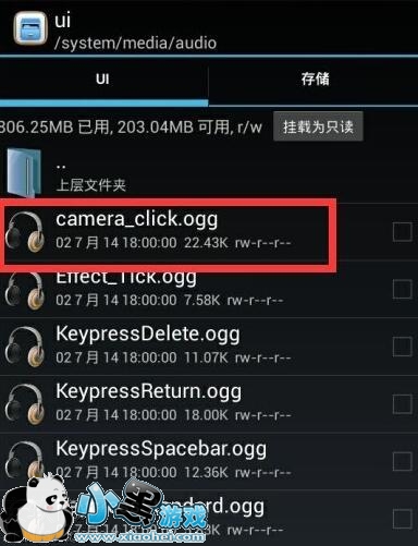 2、然后在文件路径system--media--audio--ui下,找到手机快门声音文件:camera-click.ogg: