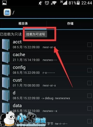 华为手机通用删除快门声音教程 1、首先,下载小黑市场新版的RE管理器,并授予手机root权限,如果你没有获取root权限,请在小黑搜索相应的root教程,打开RE以后,默认我们对手机系统软件的权限是“只读”,点击将它挂载为读写: