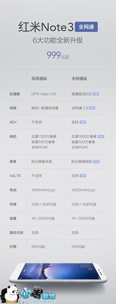 可以说红米Note3全网通版的升级还是非常大的,多出的100元十分超值,如果近期打算购买红米Note3的网友,可以等1月17日的红米Note3全网通上市后再出手。另外小米官方也发布了一张图片,详细对比了红米Note3全网通和红米Note3标准版之间的区别以及有哪些提升: