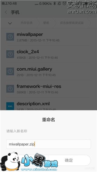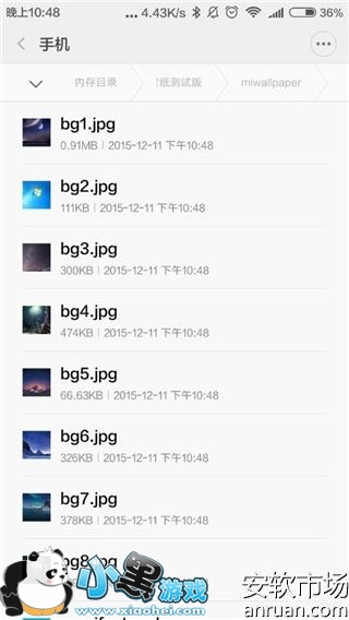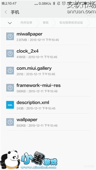 解压主题文件主要是为了得到miwallpaper壁纸文件,因为双击屏幕所换的壁纸就是存放在miwallpaper文件内。同样把 miwallpaper重命名为miwallpaper.zip后,解压到当前文件夹即可;然后打开miwallpaper文件夹,就可以看到里面的壁纸,壁纸格式为bg1.jpg,依此类推!