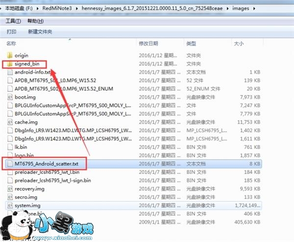 3.进入解压好的线刷包 “images” 文件夹,复制 MT6795_Android_scatter.txt 到 “signed_bin” 文件夹里