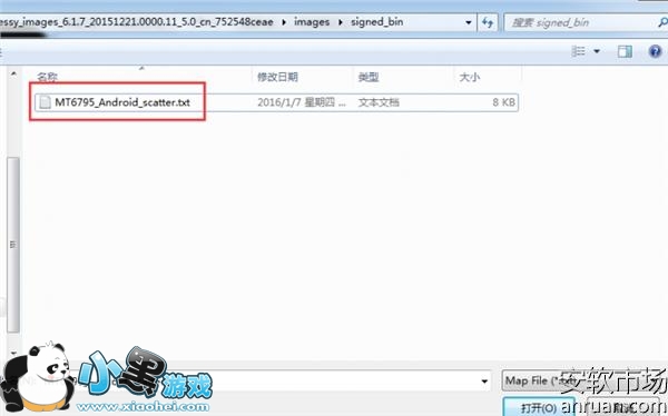 接着点 “配置文件”,弹出浏览窗口找到线刷包文件夹里面,逐级进入 “images”下的 “signed_bin” 文件夹选 MT6795_Android_scatter.txt
