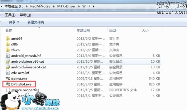2.根据自己的系统装好驱动,本人win7 64位的,故执行 DPInst64.exe