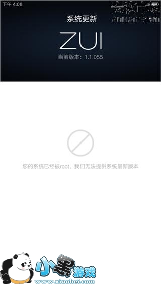 2.是否清除ROOT权限很简单的可以通过系统升级选项确认,ROOT后系统升级选项会提示你“您的设备已ROOT,我们无法为您提供最新系统版本”,但是取消ROOT后,联网即可检测ZUI的更新信息。
