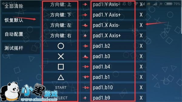 左侧的红框框代表的是模拟器本身自带的虚拟按键,右面的红色框框就是咱们需要来一个一个设置映射的按键,中间的箭头代表的是右侧与左侧虚拟按键功能一一对应的意思。