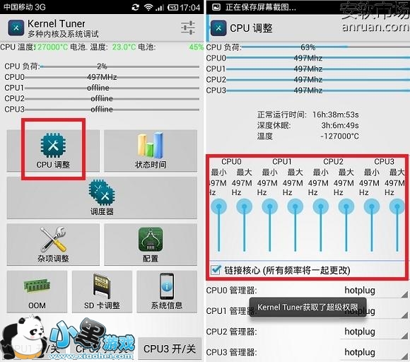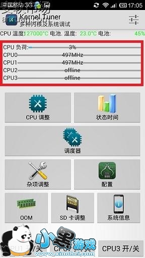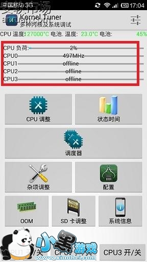 ROOT之后,安装CPU调试软件,软件很直观童鞋们可以在红色注释部分直接点击开启CPU1、2、3等