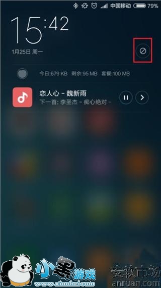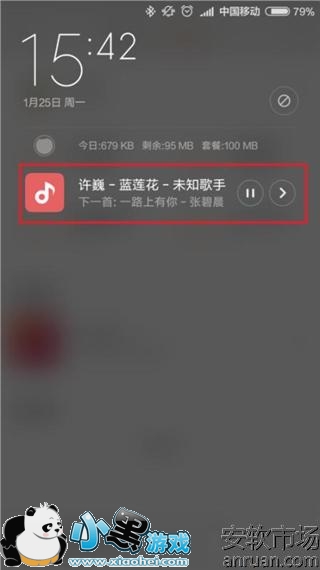 1、如果大家发现MIUI系统通知栏中小米音乐自动展现了控制开关,我们可以先下拉通知栏,找到控制开关出现的位置。