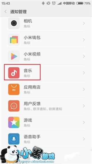 3、由于该按钮具有批量屏蔽应用消息通知的功能,所以接下来我们需要选择要屏蔽的应用,这里我们直接选择屏蔽小米音乐即可。