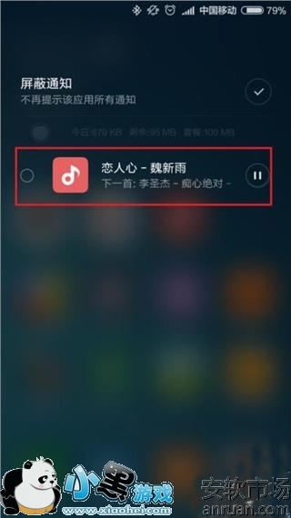 取消小米音乐自动在通知栏中显示控制开关的方法我们暂且介绍到这里。当然各位如果习惯了在通知栏操作控制的话那么把屏蔽解除掉即可。