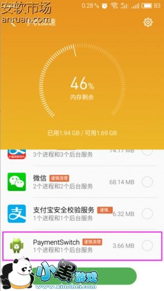 当然最简单的方法还是建议大家在魅族Pro 5上尽量不要安装一些强制性的清理软件,毕竟手机上用的运存有限,而安全一类的软件带的清理功能并不太实际,所以大家在无法打开指纹验证时首先要考虑的就是PaymentSwitch这个进程,如果进程被结束的话对应的功能也就自然无法唤醒了。
