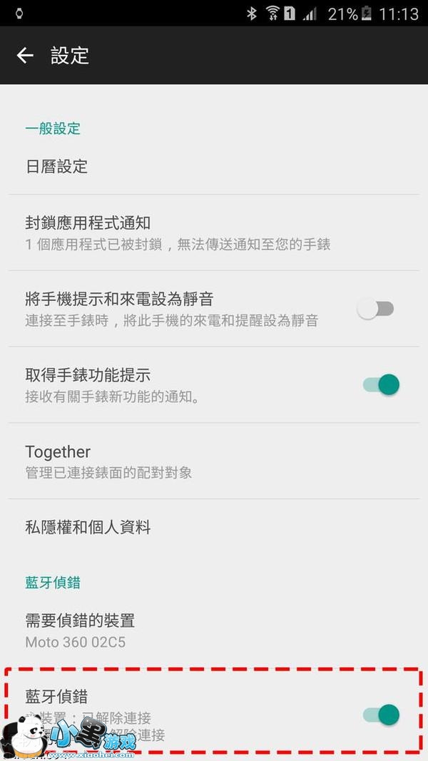 2.打开手机的USB调试(如果没有开发人员设置,就狂点内部版本号),打开android wear手机端app,打开蓝牙调试,点击通过蓝牙调试,此时显示主机断开,目标连接,然后手机用数据线连接电脑。
