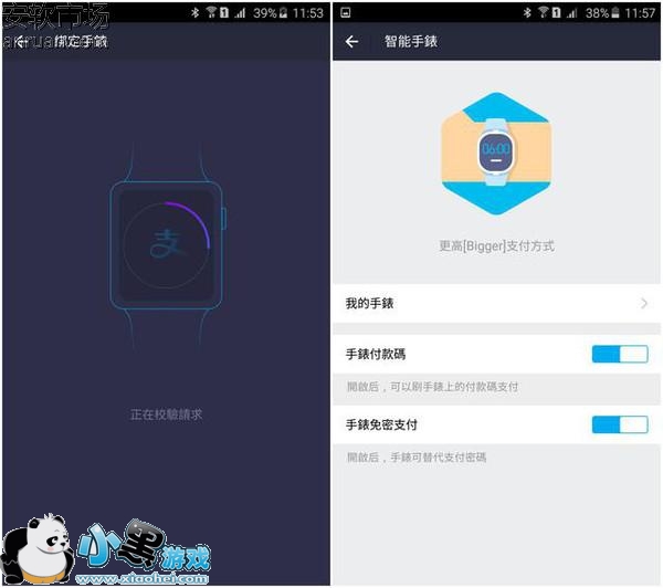 支付宝手机APP中可以完美识别MOTO 360一代的信息,并且使用。