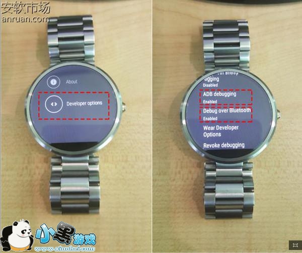 3.打开手表的关于,然后狂点版本号,进入开发者选项,打开ADB调试,打开通过蓝牙调试。