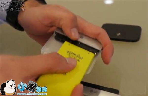 目前,LG的模块化底座有两种:一个是Cam Plus,用以增强拍照性能;另一个是Hi-Fi Plus,用以增强手机的音质。下面我们就来看看这个底座是如何拆卸的: