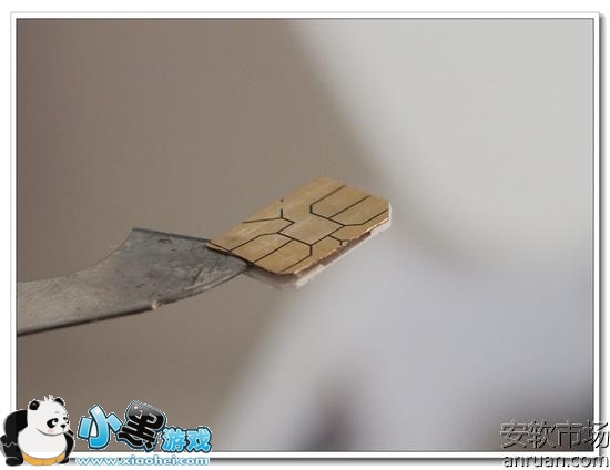 吹好后,用刻刀轻轻的沿着sim卡的边缘轻轻的切开,此时千万注意不要用力过猛,或者深入到过深的内部,这样会损坏sim卡,一旦损坏只能去售后大厅换卡了。