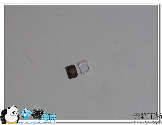 step 4 sim卡肢解,首先用电吹风吹sim卡至少一分钟,因为sim芯片是粘贴在塑料底托上的。我们只要将胶水吹软即可。