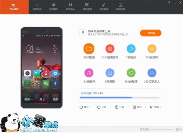 小米助手是官方开发的桌面端管理工具,它也有同屏演示功能。去小米官网将这款软件下载安装至你的电脑上即可~到目前为止,小米助手上的演示功能支持小米2A,3,4,5,但是好像还不支持全屏投射。