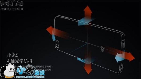 小米5的四轴光学防抖技术通过手机内陀螺仪与加速度感应器,高速检测8个方向的抖动,将信号传至微处理器立即计算需要补偿的位移量,然后将数据实时传输给微型驱动马达,快速调整相机模组的姿态,从而有效的克服因手机的抖动产生的影像模糊。