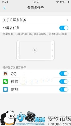 具体而言,当用户使用优酷视频等应用进行全屏界面使用时,如果有 QQ 消息、信息或微信消息,便会弹出相应的悬浮图标,用户点击图标便可开启分屏,从而进行多任务操作。总体而言,这种属于“被动式”分屏,用户无法主动开启,只有在需要时才可选择开启。