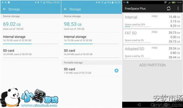 值得一提的是,SD卡容量与内置存储融合后将会被加密处理,移除SD卡可能会造成安装在此处的应用无法使用,并且加密内容也无法被其它设备读取。若需要了解更详细的存储空间使用情况,可在手机上安装第三方工具,如FreeSpace或FreeSpace Plus。