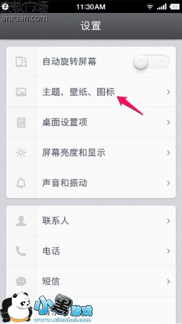 2、在锤子手机的设置功能界面中可以看到主题、壁纸、图标这个功能,点击这个功能进入,如下图。