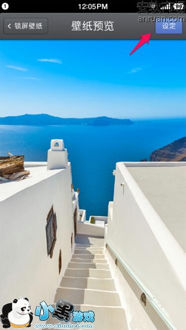 5、选择好锁屏壁纸以后,点击该主题就可以预览了,然后再点击该主题右上角的设定按钮就可以换掉当前的桌面主题了,如下图。