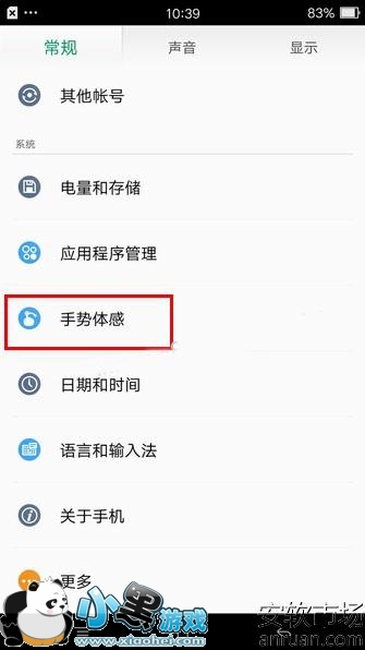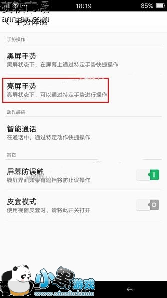 三,接下来在手势体感页面之后,找到【亮屏手势】选项,点击进入,如下图所示: