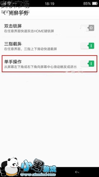 四,最后在亮屏手势页面,找到并开启【单手操作】按钮开关即可,如下图所示: