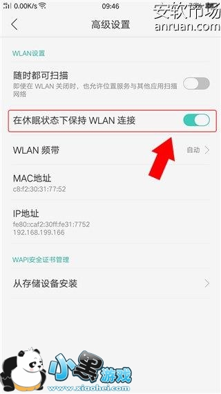 然后把在休眠状态下保持WLAN连接这个功能打开就可以咯!为了达到省电的效果。官方默认把这个功能关闭了哟!所以需要自己进去设置一次的哦!